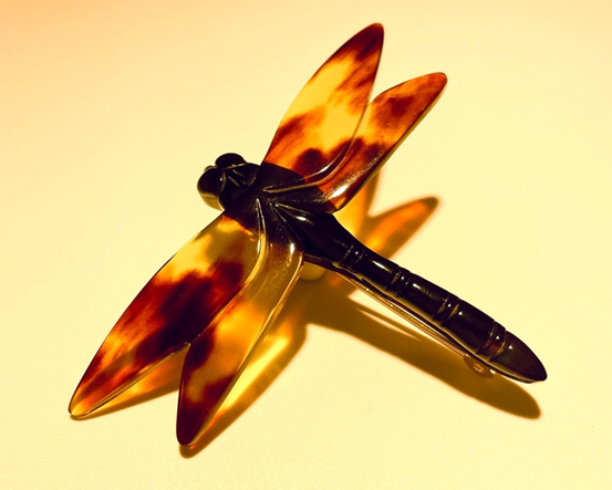 こうしてべっ甲の国内生産が始まると、大阪、江戸へと伝わっていきます。当時、亀(タイマイ)は鶴とともに長寿の印であり、めでたい品とされていたこともあり、江戸時代には眼鏡のフレーム、くし、かんざし、帯留め、ブローチなどが作られ、特に華やかな元禄の時代に流行りました。ただ、贅沢を禁じる「奢侈禁止令」がたびたび出されたため、高価なべっ甲は庶民には手の入りにくいものだったようです。